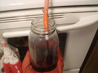 As the blackberries and sugar steam, your little hose will start to fill with purple liquid. This is the syrup!